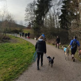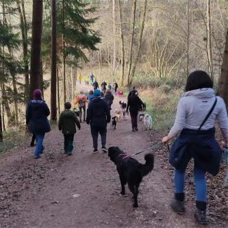 Fröhliche Hunde und entspannte Menschen beim Silvester Charity Walk der Hundeschule MenschHund am Brombachsee: