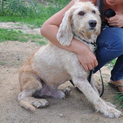 Lord war einem Jäger entlaufen, wurde angefahren und kam so in unsere Rifugio in Santa Teresa. Völlig abgemagert und verwahrlost und auch sehr eingeschüchtert.