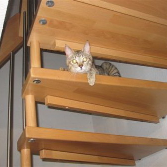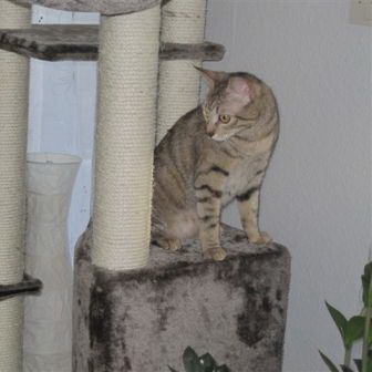 Nach einem weiteren Besuch auf der Pflegestelle konnte Alia auch meinen Mann mit ihrem unglaublichen Charme einwickeln und am 05 Mai 2013 konnten wir unsere kleine „Lady Gaga“ dann endlich abholen. Nach einigen Tagen der Eingewöhnung haben sich Smokie und Alia aneinander gewöhnt und ruhig ist es im Haus jetzt auch nicht mehr. Alia verströmt gute Laune und Lebensfreude pur, liebt es ganz oben in der Liegekuhle auf dem Kratzbaum zu schlafen oder das Haus auf links zu drehen.