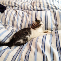Aziz - Happy End nach einem schlechten Start ins Leben. Der kleine Aziz konnte in ein traumhaftes Zuhause im schönen Dresden mit diversen Katzenfreunden einziehen. Die Herzen seiner neuen Dosenöffner hatte der kleine Racker bereits im Vorfeld im Sturm erobert. Update 10. November 2015: Hier ein kleiner Bericht..... Am 14.07.2013 traf Aziz bei uns ein. Er vertrug sich sofort mit allen anderen Katzen und Katern sehr gut. Sein bester Freund wurde William, ein rothaariger Kater etwa im gleichen Alter. Aziz ist sehr verschmust, lebt wie alle anderen als Freigänger und ist - soweit wir das beurteilen können - sehr zufrieden und glücklich. Am 03.01.2014 wurde er ohne Komplikationen kastriert. Er ist inzwischen wohl ausgewachsen und ein stattliches Exemplar geworden. Sein rechtes erblindetes Auge scheint ihn nicht im geringsten zu behindern, er tobt genauso wie alle anderen im Garten und klettert auf den Bäumen rum. |