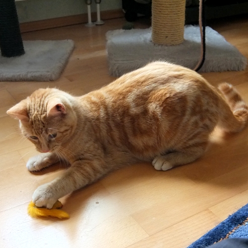 Unfasslich, wie unerschrocken und neugierig Zoetje auf alles zustürmt. Sie lässt sich auf den Arm nehmen und im Korb schwenken, rast mit Katzenleine und Katzenangel im Mäulchen rappelnd durch das Haus, Pappkartons werden begeistert geschoben. Einzig die Besetzung meditativer Orte wie Kühlschrank, Kleiderschrank etc. passiert so leise, dass die 2-beiner es möglichst nicht merken…