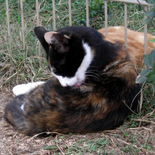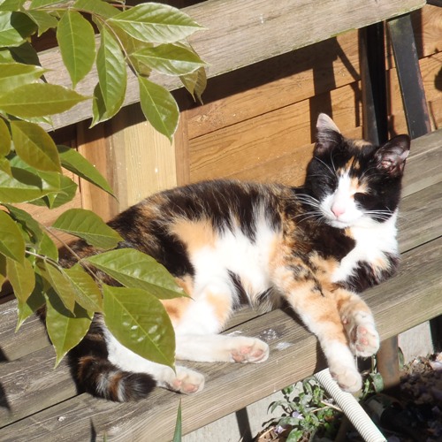 Letzte Woche waren wir zum Impfen bei der Tierärztin. Sie ist gesund und munter und wiegt 4,4 kg. Sie ist den Großteil des Tages draußen. Am Vormittag geht sie meist ins Schlafzimmer und legt sich aufs Bett oder vors Fenster. Das ist der Zeitpunkt, wo sie auch menschliche Nähe sucht. Wenn ich mich mittags hinlege, legt sie sich gerne an die Füße. Mila lag immer auf dem Kissen, neben meinem Kopf. Anschließen, am frühen Nachmittag beginnt dann die Aktivitätsphase mit einem "Imbiss" und einem Rundgang durch den Garten. Hettie kann sich selbstbestimmt bewegen. Wir haben ein Dachfenster, durch dass sie jederzeit rein und raus kann.