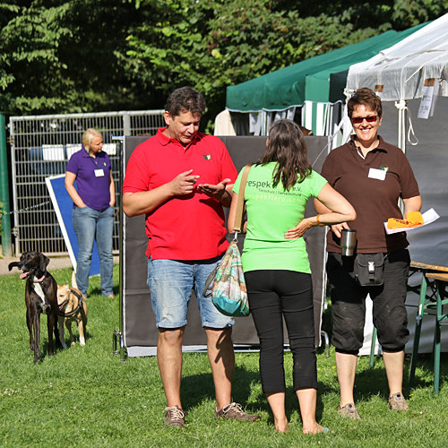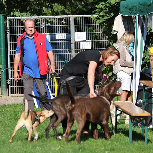 Der Bericht zum Sommerfest 2015 Euskirchen, Sonntag 08:00 Uhr: Das Haar sitzt, der Hund nicht! Zu verführerisch ist das Spiel mit den schon anwesenden Hundekumpels, also lassen die Hunde Fünfe gerade sein und für Frauchen und Herrchen beginnen die Restarbeiten vor dem Beginn des Sommerfestes. Seufz, Hund müsste man sein! Aber mit einem erfahrenen und tollem Team geht die Arbeit wie in jedem Jahr schnell von der Hand und alles wächst in Windeseile zu einem Großen und Ganzen zusammen, so dass pünktlich um 10:00 Uhr die ersten Gäste das Sommerfest besuchen können.