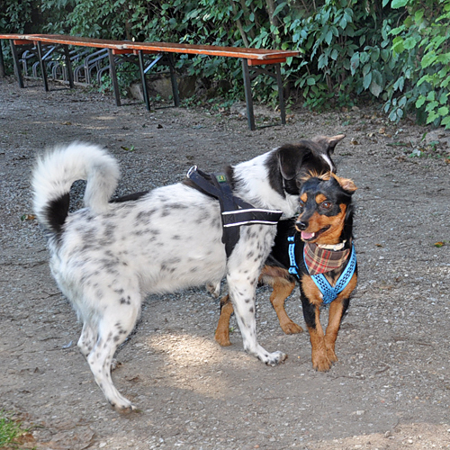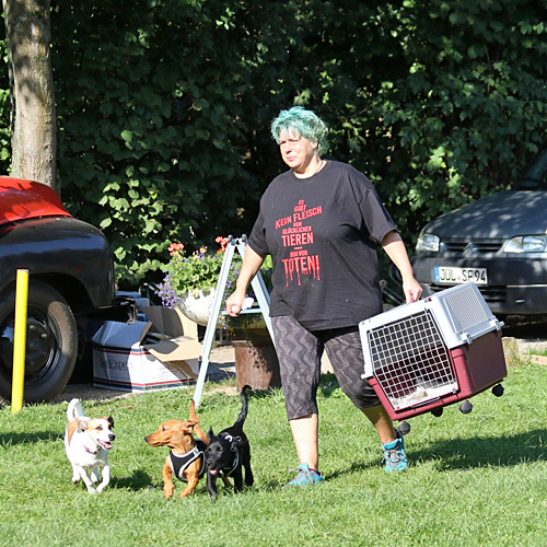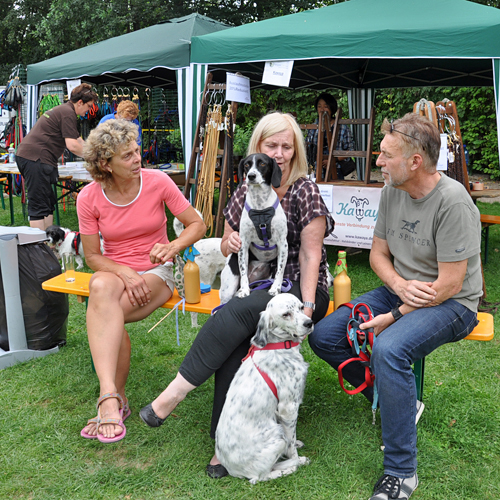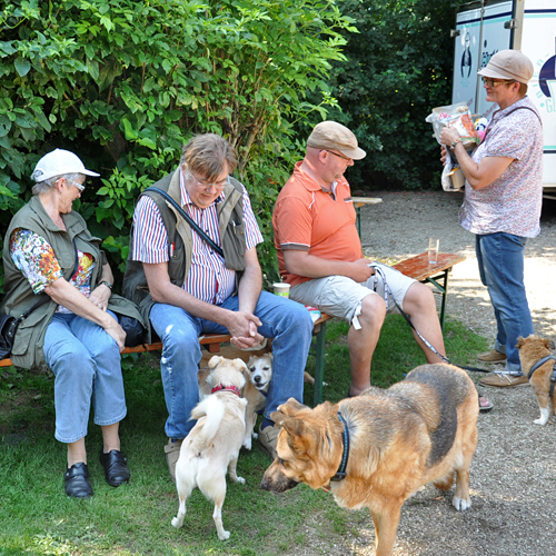 Auch, wer auf das Sommerfest kam, um an einem Sonntagmittag einmal nicht in der Küche zu stehen, wurde belohnt! Das Angebot, besonders an vegetarischen und veganen Leckereien, wird in jedem Jahr größer und so gab es neben einem veganen Burger jetzt auch veganes Chili, sehr lecker! Das Angebot an Salaten und Kuchen rundete das Angebot ab, so dass sicherlich jeder Besucher, auch was das leibliche Wohl betraf, auf seine Kosten kam. Doch was uns allen in jedem Jahr sicherlich die größte Freude bereitet, ist, wie friedlich die vierbeinigen Besucher mir ihren bekannten oder unbekannten Hundefreunden auf dem Platz herumtollen und eine tolle gemeinsame Zeit genießen. Wer das Sommerfest besucht, braucht mit seinem Vierbeiner sicherlich keine weiteren Aktivitäten für diesen Tag planen. Nicht selten finden wir die eine oder andere Fellnase fernab des Trubels bei einem kleinen Nickerchen, um Kraft für die nächste wilde Jagd zu sammeln. Jedes Jahr ein großes Spaß auch für uns Zweibeiner!