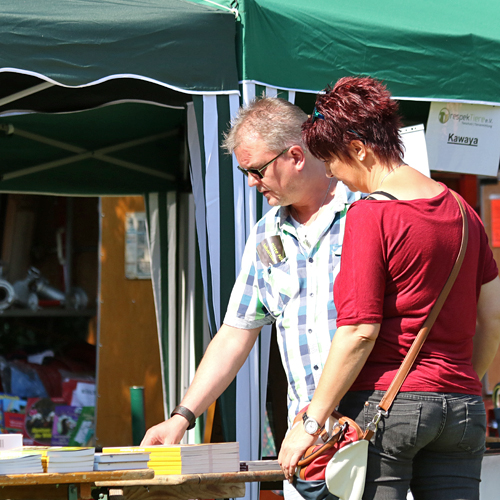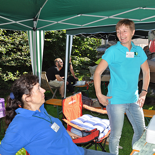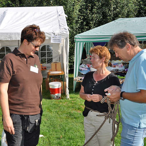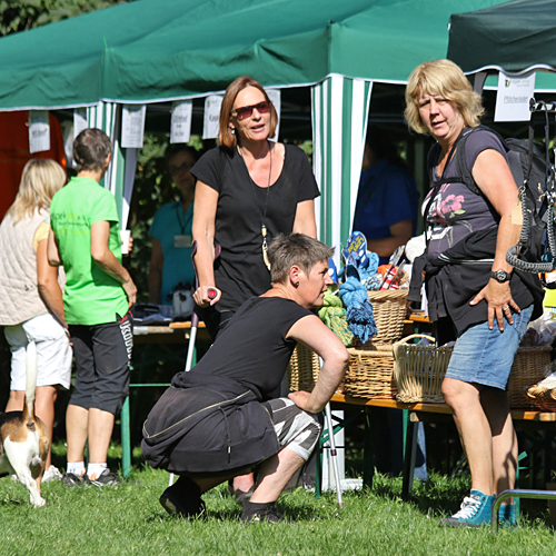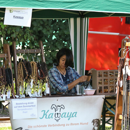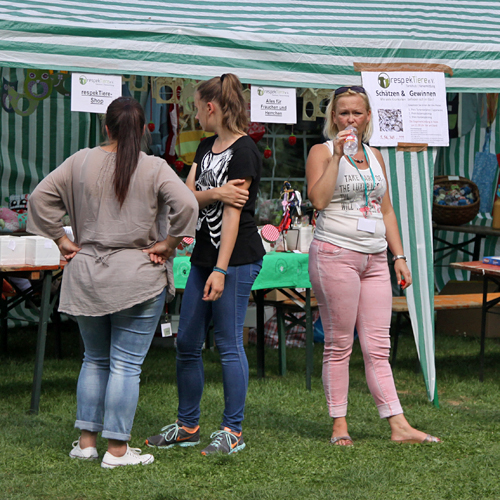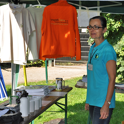 Ganz neu auf dem Platz war die Rote Trödelfeuerwehr. Schon alleine das alte Feuerwehrfahrzeug war beeindruckend anzusehen und wer Spaß am Trödeln hatte, kam hier zusätzlich auf seine Kosten! Eine tolle Idee, wir danken Angela Schmitz und Karl-Heinz Blom für die Teilnahme an unserem Sommerfest und die Unterstützung auch im Vorfeld zum Sommerfest! Ein immer gern gesehener Gast ist auch der Pfötchenladen von Dagmar Klotz mit allem was dem Hund und der Katze gefällt. Zudem konnten an dem Stand Pfotenkult und Miwa Yamanaka noch wunderschöne Halsbänder und Leinen erstanden werden. Und wer sich schon immer mit seinen lästigen Pfunden beschäftigen wollte, hatte die Möglichkeit, tolle Bücher von Weight Watchers zu kaufen und gleich zu Hause die Rezepte umzusetzen. Großen Anklang fanden auch unsere neuen Fleecejacken, Westen, Poloshirts und T-Shirts mit respekTiere-Logo, so dass es auch im Nachgang zum Sommerfest schon einige Nachbestellungen gab! Darüber freuen wir uns natürlich sehr!