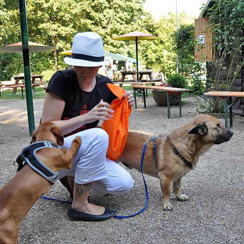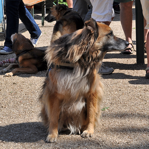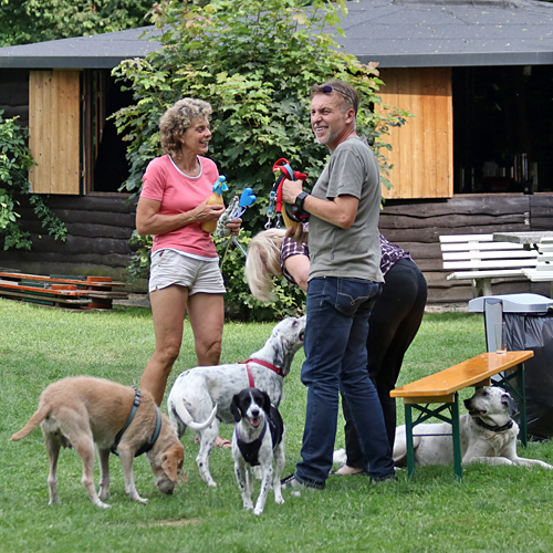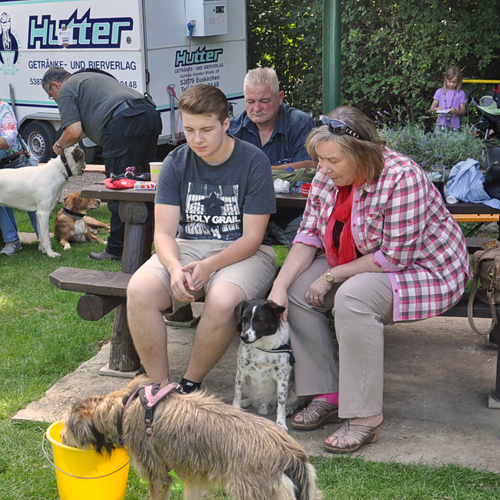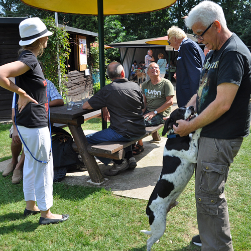 Das war wirklich ein großer Spaß für alle (oft auch für die eigentlich Unbeteiligten Zuschauer?). An dieser Stelle noch einmal einen herzlichen Glückwunsch an die Gewinner! Gut gemacht! Sicherlich zweimal hinschauen mussten diejenigen, die das traurige Schicksal der Hündin Giara verfolgt hatten, denn auch Giara ließ es sich nicht nehmen, dem Sommerfest einen Besuch abzustatten. Und Giara sah großartig aus. Ihr Leben auf der Pflegestelle tut ihr sichtlich gut, so aufgeblüht ist sie. Von der halbtot aufgefundenen Hündin ist keine Spur mehr zu erkennen. Ob die Pflegestelle sich wohl noch trennen wird..? Wir glauben das nicht ?!