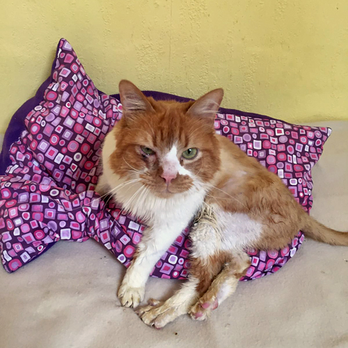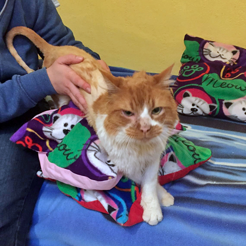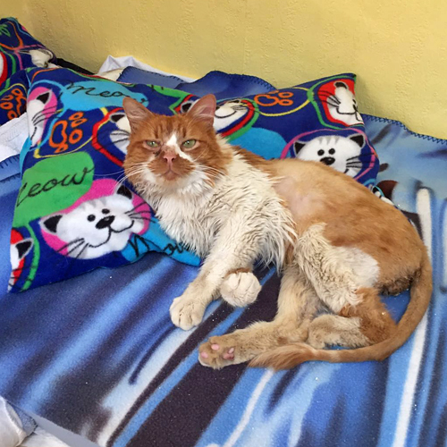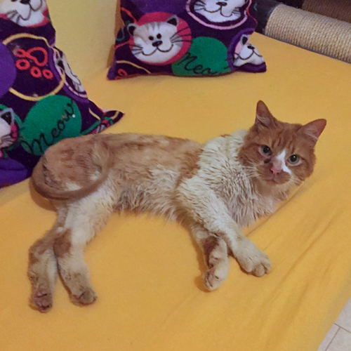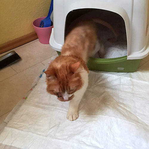 Gerade bei unserem gelähmten Mario (Möhre) war es uns ein großes Anliegen, eine Verbesserung für ihn zu erreichen. Letztendlich konnte leider bei keiner Untersuchung festgestellt werden, warum er nicht richtig laufen kann, um einen Ansatz für eine Therapie zu finden. Und am Ende gehen wir alle davon aus, dass er mit dieser Störung geboren wurde oder er schon im Kittenalter eine Infektion hatte. Da es Möhre gut geht und die Physiotherapie zumindest Verbesserungen schafft, wollen wir aber nicht lange mit dem Schicksal hadern. Es gab eine tolle Anfrage für unsere rote Schönheit und nach dem ersten Besuch war klar, dass Möhre das große Los gezogen hatte. Möhre kommt jeden Tag mit auf den Balkon und ist durch die verschiedenen Schichten der neuen Familie nie alleine. Er genießt sichtlich, dass man sich voll und ganz auf ihn konzentriert und ihn verwöhnt. Möhre wird seinen Weg gehen und ist durch seine Behinderung und sein Wesen einzigartig. Wir danken der Pflegestelle, die hier großartige Vorarbeit geleistet hat und der neuen Familie, die Möhre in ihr Herz geschlossen hat und verabschieden ihn als SOS-Tier. Machs gut, großer Rotschopf! |