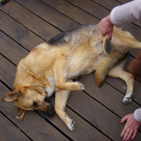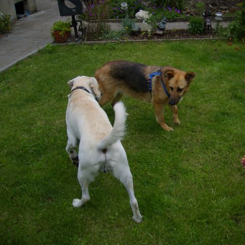 Maria haben wir im Frühjahr 2009 in der Nähe von Frankfurt in Empfang genommen. Vor mir stand ein Fellbündel was vor allem und jeden Angst hatte. Dank einer geklauten und in kleine Stücke geschnittene Fleischwurst habe ich das erste Vertrauen aufgebaut. Zu Hause angekommen wurde erst mal ihr neues Heim vorsichtig erkundet. Maria und ich haben uns beide sehr schnell angefreundet.