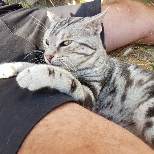 Magro heißt mager, dieser Name lag auf der Hand, als wir den bildschönen Kater im Februar bei einer Käserei in San Pasquale mitgenommen haben.