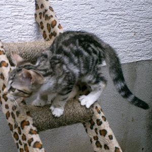 Molli und Tabata haben ihr endgültiges Zuhause bei einer lieben Familie in Hennef bezogen. Die beiden quirligen Mäuse sind in einem lebhaften Haushalt mit einem vorhandenen Kater, einem Hund und zwei kleinen Kindern gelandet und haben somit alles, was sie zum Glücklichsein brauchen. Mit dem Hund verstehen sich Molli und Tabata schon prima, vor allem Tabata kuschelt sehr gerne mit ihm und die beiden putzen sich auch gegenseitig. Auch mit dem vorhandenen Kater wird gekuschelt, wobei sich Molli momentan als kleine Zicke etabliert und dem armen Katermann auch schon mal eins auf die Nase gibt. Alles in Allem sind die 4 aber schon jetzt ein harmonisches Quartett und die Adoptivmama ist für die weitere Entwicklung sehr optimistisch. Molli und Tabata (jetzt übrigens Flocke und Brummer) sind auch zwischenzeitlich kastriert so dass dem ersten Freigang nichts mehr im Wege steht. Wir wünschen der zahlenmäßig ausgewogenen Mensch- / Tierfamilie viele schöne gemeinsame Jahre. |