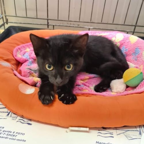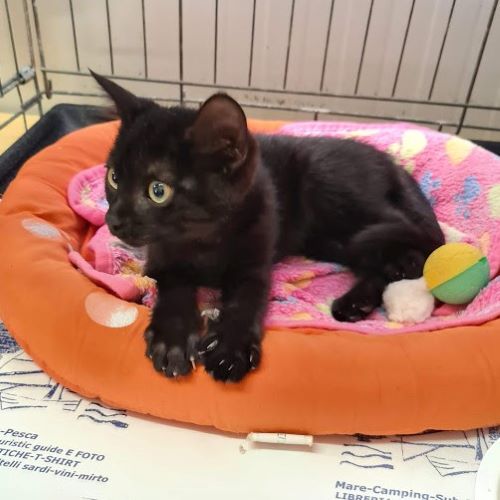 Hier zur Erinnerung an ihre Geschichte: Pechschwarze, bildschöne, kleine Panther, verschmust, liebevoll, ein kleines Wunder der Natur. Wenn unsere sardischen Kollegen im Tierheim sie auf dem Arm halten und streicheln und mit ihnen spielen, möchte man nicht glauben, dass Giorgio und Giorgia letztlich das Ergebnis eines „Deals“ sind. Die Mama von Giorgio und Giorgia – übrigens die Schwester von Babba – lebt nicht weit von unserem Rifugio auf Sardinien und hat sogar einen „Besitzer“. Diesen konnten wir bisher mit keinem Argument von der Notwendigkeit der Geburtenkontrolle überzeugen. Wohlwollend würden wir den Charakter als schwierig bezeichnen und das Ergebnis unserer fruchtlosen Diskussionen waren vier Katzenkindern, von denen durch unser Zutun zwei ein schönes Zuhause auf Sardinien fanden. Mit der Zusage, dass wir Giorgia und Giorgio bei uns im Tierheim aufnehmen würden , konnten wir endlich die Mutterkatze kastrieren lassen. Tierschutz braucht Diplomatie, langen Atem, Geld und jetzt brauchen wir ein umwerfendes Zuhause für die beiden Pantherchen. |