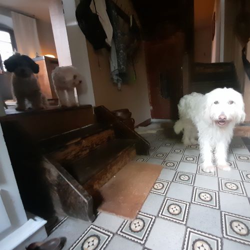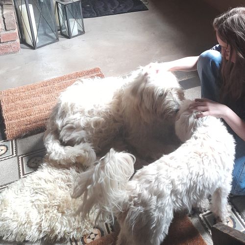 Die schöne Brenda sah ich durch Zufall auf der Seite von Respektiere und es tat mir in der Seele weh, wie lange sie schon auf ihre Chance wartet . Da ich einen Pflegestellenplatz frei hatte und Hunde, die schon in Deutschland sind mehr Anfragen bekommen , habe ich Kontakt aufgenommen und mit Hilfe der lieben Familie Steiner kam Brenda am 22. Juli abends kurz nach 22 Uhr in Wiesbaden mit dem tollen Transport von Corda Vivendis an. Es stand uns noch über eine Stunde Weiterfahrt bis nach Hause bevor und die nutzte Brenda um ausgiebig aus dem Fenster zu schauen und zu beobachten. Das hat mich sehr gefreut, weil aufgrund der Beschreibungen und den Bildern aus Sardinien ja von einem absoluten Angsthund auszugehen war … wobei häufig ein Neustart eben auch eine Chance ist alte Verhaltensmuster abzulegen ! Kurz vor Mitternacht habe ich dann meinem Bauchgefühl folgend, mit meinen Hunden eine Nachtwanderung unternommen und konnte Brenda gut integrieren, so dass sie gleich in der ersten Nacht im Rudel in meinem Schlafzimmer schlief. Das war ein perfekter Start und eine super Grundlage für alle weiteren Schritte. Ich konnte sie überzeugen, dass längere Spaziergänge toll sind, dass man allein ins Auto rein- und rausspringen kann, sie hat schnell verstanden, wie man ordentlich bei Fuß läuft und konnte den Tagesablauf kennenlernen. Meine Hunde waren mir dabei eine große Hilfe, weil sie sich an ihnen orientieren konnte, besonders der kleine weiße Idefix mag sie sehr und es gibt schon die ersten Spielversuche zwischen den beiden. Brenda ist eine liebe und sanfte Hündin, hat aber manchmal einen rassetypischen Dickkopf und leider einige Trigger aus der Vergangenheit, die eine absolute Panik auslösen können. Dazu gehören laute, schreiende und viel redende Menschen, alte Herren mit Tabakgeruch, wenn jemand spontan die Arme nach oben reißt und Stöcke jeglicher Art, also auch Besenstiele … am liebsten mag sie fernab der Zivilisation irgendwo an einem strategisch günstigen Punkt die Natur beobachten. Ich habe so eine gute Verbindung zu ihr aufbauen können und ihr magischer Blick aus den schönen Bernsteinaugen hat so viel Liebe, dass ich ihr nicht noch einen Neustart zumuten wollte und wir lieber da weitermachen, wo wir schon sind. Deshalb wurde ich nun zum „Pflegestellenversager“ und wir werden weiter gemeinsam durchs Leben gehen ! Damit ist unser Hunderudel komplett und ich sage willkommen liebe Neva … zum Start in Dein neues schönes Leben bekommst Du auch einen neuen passenden Namen, der eine Brücke zwischen alt und neu bildet. ( neve heißt auf italienisch Schnee, passend zu ihrer eisbärenhaften Erscheinung ).