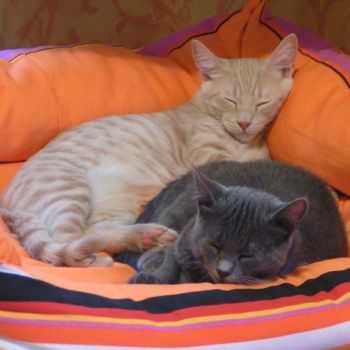 Emma und Elio haben ein wunderschönes Zuhause südlich von München gefunden. Schon bei dem ersten Besuch auf der Pflegestelle hat sich die Familie – besonders die beiden Töchter – unsterblich in die Beiden verliebt und einige Wochen später stand dann der Umzug an. Die beiden Süssen toben nun häufig gemeinsam durch die 3 Etagen “ihres“ Hauses und spielen Fangen und Jagen. Während sich Elio zu einem sinnlichen Schnurr-Schmuser entwickelt hat, der sehr menschenbezogen ist und seine Lieblings-Dosenöffner dabei häufig wechselt, ist Emma die treuere Seele, die hocherhobenen Schwanzes freudig herbei kommt, sobald ihre Familie nach Hause kommt und auch morgens beim Aufstehen schon schnurrend bereit steht, um die ersten Streicheleinheiten des Tages entgegen zu nehmen. Elio hat seinen Lieblingsplatz auf dem Aquarium gefunden, wo er sich mit Vorliebe schnurrend sein Bäuchlein wärmt und (vergeblich) nach den Fischen tatzelt. Die kleine Emma dagegen wechselt häufig ihre Lieblingsplätze, wobei sie besonders gerne uf der obersten Etage des Kratzbaumes thront. Nachdem die beiden Süßen nun kastriert sind, wird im Moment der Gang durch die Katzenklappe geübt, damit die Nachbarskatzen endlich begreifen, wessen Revier nun der Garten ist!!! Wir freuen uns, dass Emma und Elio es sooo gut angetroffen haben und wünschender ganzen Familie schöne Jahre miteinander. Macht`s gut ihr Süßen. |