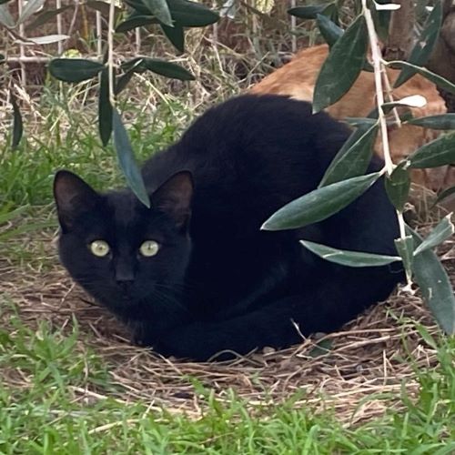 Tania und Tyson – wer schenkt ihnen Liebe und Geduld? Nun ist es schon etliche Monate her, dass die Geschwister Tania, Tyson und Tilda von einem Weingut zu uns ins Rifugio zogen. Alle drei waren unglaublich scheu, Tilda sogar so sehr, dass wir ihr einen Platz im Katzenpark schenkten – es wäre für sie schlichtweg keine Option, mit Menschen zusammen zu leben. Für die Pantherchen Tyson und Tania hingegen besteht noch die Hoffnung auf ein eigenes Zuhause. Alles, was sie brauchen, ist Zeit... Die anfangs ausgesprochen scheue Tania lässt sich mittlerweile schon sehr gerne streicheln. Wenn man darauf warten kann, dass die (bis auf einen winzigen weißen Fleck auf der Brust) pechschwarze Schönheit von selbst Kontakt aufnimmt, genießt sie die menschliche Nähe und Zuwendung. Tyson hingegen ist nach wie vor eher misstrauisch und zieht sich zurück, wenn Zweibeiner das Gehege betreten. Er wird definitiv Geduld brauchen, um Vertrauen zu fassen... deshalb suchen wir für den prächtigen Jungkater ebenso wie für seine Schwester Tania katzenerfahrene Menschen, die ihnen Zeit geben und zulassen können, dass sie sich in ihrem eigenen Tempo integrieren.
