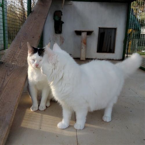 Update Februar 2024: Ino – bekommt er noch eine Chance? Der bildhübsche weiße Ino mit den dunklen Tupfen fühlt sich in der Gruppe am wohlsten... er spielt und kuschelt mit Massima, Melino und Mosquito und versteckt sich gerne hinter seinen Freunden, wenn unsere Kolleginnen in die Box kommen. Ino ist ein sehr sanfter und lieber Kater, der Menschen gegenüber nach wie vor eher scheu ist. Mittlerweile lässt er sich berühren und streicheln, aber bislang verhält er sich meistens eher zurückhaltend... Wie unsere Kolleginnen betonen, ist Ino alles andere als wild, sondern eben nur ängstlich – er braucht seine eigenen Menschen, die ihm Zeit und Geduld geben und wo er in seinem eigenen Tempo Nähe wagen darf. Wir hoffen sehr, dass endlich jemand auf das zarte Kerlchen aufmerksam wird und ihm die Chance auf ein Happy End ermöglicht... geschieht das nicht, wird Ino spätestens im Sommer in den Park umziehen müssen, was in der Regel dazu führt, dass Katzen jeden engeren Bezug zu Menschen verlieren. Sehen Sie hier ein Video von Ino... Sehen Sie hier ein weiteres Video von Ino... ...und hier noch ein Video von Ino...