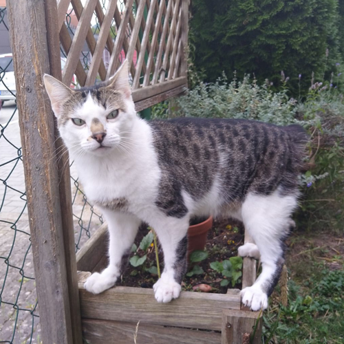 Oskar ist wie gesagt sehr sozial und kuschelt gerne mit Mensch und Tier. Aufgrund seines Handicaps sollte der liebe Kater in der Wohnung gehalten werden; da er sehr gerne draußen ist, wäre ein vernetzter Balkon oder gesicherter Freigang in einem Gärtchen natürlich wundervoll für ihn. Oskar kann selbstverständlich nach Absprache besucht und kennengelernt werden und würde sich auch sehr über eine Pflegestelle freuen. Er wird von seiner Familie sehr geliebt, und es fällt seinen Menschen unglaublich schwer, sich von ihm zu trennen. Deshalb möchten sie auch in Zukunft für ihn sorgen und würden eine lebenslange Patenschaft für Oskar übernehmen, um die notwendigen Kosten abzudecken.