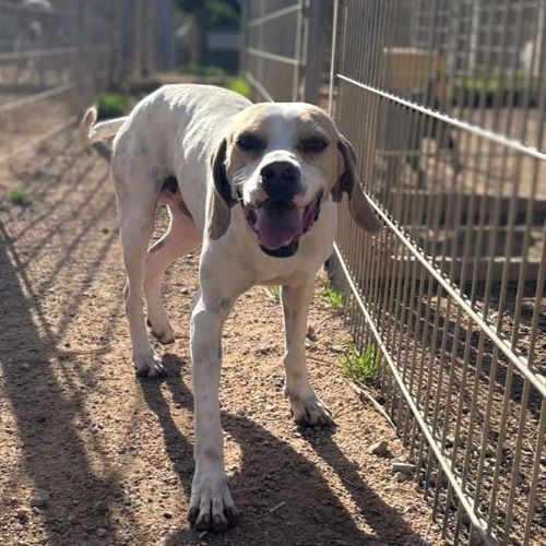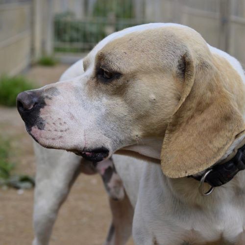 Der Jagdhund-Rüde verhält sich aktuell noch etwas zurückhaltend, aber gutmütig.