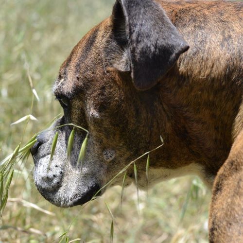 Die zutrauliche Boxer-Hündin Prada wurde 2014 geboren, stammt ursprünglich aus Deutschland und besitzt einen deutschen EU-Pass.