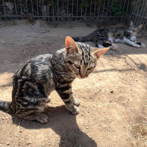 Das kleine Tigermädchen gehört zu den unzähligen Katzen, die bei Verkehrsunfällen verletzt werden. Tierschützer aus Luras informierten uns, dass ein winziges Kitten verletzt am Straßenrand lag und brachten Urania in die Klinik. Sie hatte einen Beckenbruch erlitten, war aber noch viel zu klein, um operiert zu werden. Also musst sie lange Zeit bei uns im Ambulatorio bleiben, bis sie alt genug für den Eingriff sein würde. Über vier Monate im Käfig zu sitzen und nur stundenweise im Ambulatorio herumlaufen zu dürfen, ist alles andere als ein Spaß! Doch dann sollte sich zeigen, dass der Bruch auch so gut verheilt war, lediglich ein leichtes Hinken ist zurückgeblieben. Nun konnte Urania ins Gehege umziehen, um endlich mehr Raum und Gras unter den Pfötchen zu haben... und hier muss sie hoffentlich nicht wieder monatelang bleiben, denn sie wünscht sich so sehr, ihre eigenen Menschen zu finden!