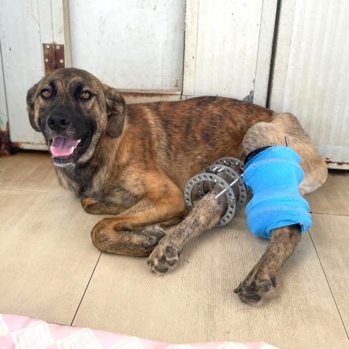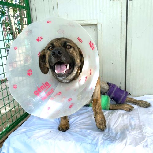 Unser Orso hat mindestens drei Schutzengel an seiner Seite! Umherirrend, vermutlich ausgesetzt, hatte er einen schlimmen Unfall, als er eine vielbefahrene Strasse kreuzte. Beide Hinterbeine waren mehrfach gebrochen, aber er überlebte ohne weitere innere Verletzungen und konnte gerettet werden. Ein engagiertes Ärzteteam operierte ihn und kümmert sich bis heute intensiv um den jungen Rüden. Im Rifugio hat er zunächst seinen Platz gefunden. Dort besuchen ihn die Ärzte regelmässig, versorgen die Verletzungen und helfen ihm mit Physiotherapie wieder Kraft zu bekommen. Im Augenblick trägt er noch Fixateure, doch die werden bald entfernt und dann ist Orso bereit für ein eigenes Zuhause! Wir hoffen, daß er das bald findet, denn gerade ein Hund, wie Orso braucht dringend menschliche Zuwendung und Liebe, um wieder ganz gesund zu werden. Und auch, wenn alle im Refugio alles menschenmögliche tun, ist er dort nur einer von vielen.