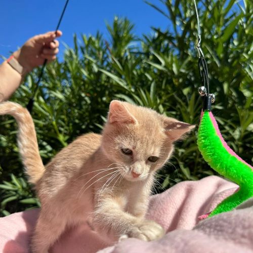 Das kleine Rotpelzchen Mokka und Bruder Max wurden von Touristen entdeckt; ohne Mutterkatze und hilflos. In Absprache mit uns brachten sie die Geschwister zu unserer großartigen Pflegestelle Sybille, die sich der beiden annahm und sie liebevoll versorgt(e). Leider war Max war von Anfang an sehr kränklich und sollte die vorangegangenen Strapazen trotz engmaschiger Therapie leider nicht überleben; ein harter Schlag für Sybille und erst recht für Mokka, die ihren Bruder immer noch vermisst. Insgesamt entwickelt sie sich aber sehr gut und ist mehr als bereit, nun endlich eine eigene Familie zu finden...