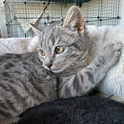 Lea – Minimaus sucht ein Zuhaus! Tierschutz macht keinen Urlaub – das musste unsere Kollegin Anna wieder einmal am eigenen Leibe erfahren: In einer Ferienanlage entdeckte sie eine Kätzin und ihr Kitten. Das Katzenkind schien gesundheitliche Probleme zu haben, seine Mutter war natürlich unkastriert. Anna brachte die beiden zu unserer großartigen Pflegestelle Sybille, wo sich herausstellte, dass das Kitten lediglich unter einer starken Verstopfung litt. Mittlerweile ist die Mutterkatze längst kastriert und wurde in ihr altes Revier zurückgebracht, weil sie ganz offensichtlich nichts mit Menschen zu tun haben wollte. Ganz anders sieht es bei ihrem Nachwuchs aus; die kleine Lea findet Zweibeiner toll und möchte deshalb unbedingt eine eigene Familie haben... Das Tigermädchen ist unglaublich süß und bringt selbst den Tierarzt zum Lachen, wenn sie dort zum Impfen vorbeischaut: Vorsichtshalber faucht sie erst einmal, um sich dann umso lieber streicheln zu lassen. Sie mag Menschen und versteht sich prima mit allen Kitten vor Ort, sodass sie auch zukünftig die Nähe anderer Katzen im passenden Alter braucht. Außerdem wünscht sie sich, sie nach der Eingewöhnung wieder Gras unter den Pfötchen spüren zu dürfen. Möchtest Du Lea einen Platz in Deinem Heim und Deinem Herzen schenken? Dann melde Dich einfach unter Diese E-Mail Adresse ist gegen Spam Bots geschützt, Sie müssen Javascript aktivieren, damit Sie es sehen können ! Gerne bringt die Süße auch einen Kumpel mit zu Dir. Wir vermitteln bundesweit an Menschen, bei denen unsere Katzen Freigang und Katzengesellschaft genießen dürfen. Ihr Ansprechpartner für diese Vermittlung: respekTiere e.V. Katzenteam