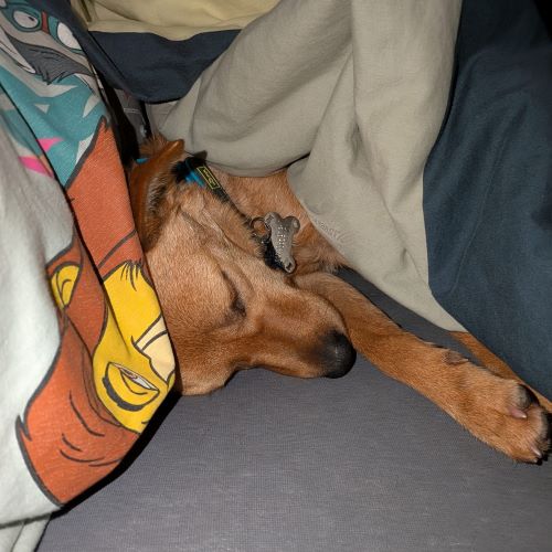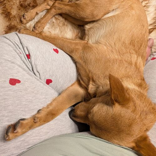 Dem Transporter entnommen, würde ich einen Mann übergeben. Eine Frau streichelte mir verzückt den Kopf und kraulte meine Ohren. Dann mussten wir kurz warten, denn es reisten zwei Pippos nach Hilden & es gab ganz kurz Verwirrung bei unseren Pässen. Mein Kumpel "Rais" stieg mit mir dort aus. Bis zuletzt konnten wir uns sehen, dann fuhren die Autos getrennte Wege. Meine Fahrt war nicht lang und beim nächsten Halt durfte ich aussteigen und mich erleichtern. Hab direkt alles aus dem Tank gelassen was ging. In der Wohnung habe ich zuerst alles erkundet. Es roch nach Hund, aber da waren nur die zwei Menschen. Es gab auch direkt eine kleine Portion Futter! Und dann bin ich einfach zu meinem Herrchen auf das Sofa gehüpft. Das gab keinen Ärger, nur kuscheln & Fotos. Geschirr ab und schmusen! Das war TOLL! Frauchen hat mich sogar mit den Noppenhandschuhen gerubbelt. Da hab ich doch glatt gestrahlt wie ein Kernkraftwerk! Sie übrigens auch. Und man mag es kaum glauben, aber ich durfte mit ins Bett. Ins BETT!!! Ich habe dann direkt Küsse verteilt & bin komatös eingeschlafen. Nach angenehmer, aber kurzer, Nachtruhe holten wir dann Alice ab. Sie war der Hund, den ich überall gerochen hatte. Damit ich in Ruhe ankommen durfte, hat sie die Nacht bei "Tante Molly" und Frauchens Mama verbracht. Mit Molly & Alice ging es dann zuallererst auf einen Spaziergang. Danach auf eine große, eingezäunte Wiese, wo ich mit Schleppleine, spielen durfte. Nach Sonnenaufgang sind wir dann nach Hause gefahren. Molly wieder zuhause abgesetzt & dann in unsere Wohnung.