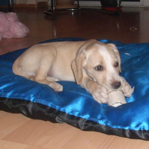 Kleine freche Dalia, schon in den ersten Wochen Deines jungen Lebens ist reichlich was los. Erst erblickst Du das Licht der Welt auf einer Insel im Mittelmeer, hört sich toll an, war aber für Dich und Deine Geschwister wie für soviele Welpen nicht der perfekte Start für ein Hundebaby. Ihr werdet gefunden - Glück im Unglück - und wenig später bieten Dir liebe Menschen einen Pflegeplatz bei Hamburg an. Du liebst die Menschen und eroberst jeden Tag etwas mehr Deine neue Welt. Alles läuft jetzt glatt für Dich und ich sage Dir, als ob ich es geahnt hätte, als Du auf dem Flughafen Hamburg gelandet warst, so süss und zart, so unschuldig und entzückend - ich sagte noch, dass wir für Dich spätestens in drei Wochen Deine Familie gefunden haben - läuft es jetzt tatsächlich noch glatter als glatt, keine drei Wochen hat es gedauert:-) Deine Familie ist da. Sie haben alle Zeit der Welt für Dich und Du bist nun ihr Baby. Ein ganz reizender Hundejunge wird an Deiner Seite sein und mit Dir durch dick und dünn gehen, ihr werdet viel Spass haben, da bin ich mir sicher! Du kleine kecke Maus, sei lieb und streng Dich an in der Hundeschule! Wir freuen uns über Nachrichten von Dir! Dalia ist seit dem 12.4. vergeben und macht nun Kaltenkirchen unsicher:-) |
