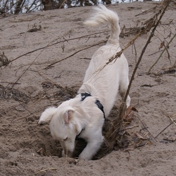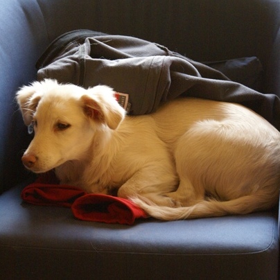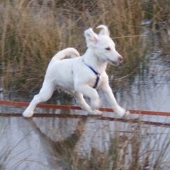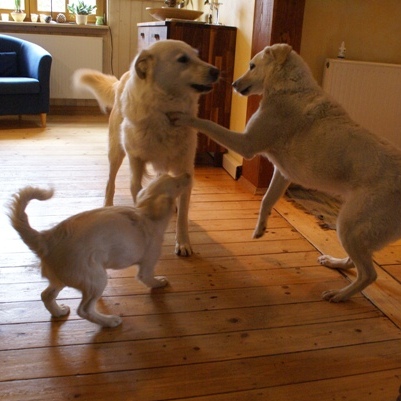 Liebe Rita, diesen Winter warst Du unser Sonnenschein! Gemeinsam mit Deiner Schwester Rosa bist Du Mitte Dezember bei uns eingezogen, diese fand schon drei Wochen später ein endgültiges und wunderbares Zuhause und Du bliebst alleine und etwas traurig bei uns zurück. Wir alle haben versucht, Dich abzulenken, insbesondere unser Maremmano Rudolph hat intensiv mit Dir gespielt und vielleicht hast eher Du mit uns als wir mit Dir gespielt: Schuhe und Kleidung verschleppen und annagen, verbotenerweise (weil Du noch so klein warst) die Treppen rauf- und runterflitzen – wir waren ständig hinter Dir her und Du hast die daraus entstehenden Renn- und Zerrspiele genossen. Da Du immer an Deine Schwester gekuschelt geschlafen hast, durftest Du zum Einschlafen in unser Bett und wurdest dann in Deines ausgelagert. Das hat nur zwei Nächte geklappt, dann hast Du auf zwei Beinen stehend über die Bettkante geschaut und uns so lange am Schlaf gehindert, bis wir Deinem Wunsch nachgegeben haben. Dann bist Du schnell unter die Decke gekrabbelt und hast dort, fest an uns gedrückt, die Nacht verbracht. Nach zwei Tagen warst Du wieder der fröhliche und quirlige Hund, den wir kannten. Spaziergänge mochtest Du besonders gerne und da Du noch nicht so weite Strecken gehen solltest, wir aber mit unseren drei Großen auch längere Runden drehen wollten, haben wir Dich nach für unser Verständnis ausreichender Laufzeit in einen Rucksack gepackt. Da haben wir die Rechnung ohne Dich gemacht: Nur schauen und nicht laufen und springen waren gar nichts für Dich, Du hast gezappelt und gequengelt, bis Du wieder raus durftest und gemeinsam mit Rudolph und unserer Maremmano-Mix-Hündin Rosa wie die ideale Familie ausgesehen und alle Spaziergänger zum Lachen gebracht hast. Rudolphs Schleppleine tragen, Löcher buddeln, den Kopf in Grasbüschel stecken, platschend durch Pfützen rennen, mit Anlauf auf Eisflächen springen und dann schliddern, bäuchlings verschneite Hänge hinabrutschen und dabei mit den Hinterbeinen anschieben, alles Unbekannte verbellen, fremde Hunde zum Spielen bringen….Wir haben draußen und drinnen viel Zeit damit verbracht, Dir einfach nur zuzusehen und uns mit Dir zu freuen. Ich glaube, Du hast oft gegrinst vor Lebensfreude. Nach den Spaziergängen gab es häufig noch wildes Gerenne durchs Haus oder Du hast aus Spaß und sehr gesprächig die Spielzeugkiste ausgeräumt oder einfach Löcher im Garten gebuddelt oder laut bellend den Hof bewacht, dann bist Du für ein Schläfchen auf Sessel oder Couch gesprungen oder hast Dich in eines der Betten der Großen gelegt, die Du mit Deinem ausgeprägten Sozialverhalten gut einschätzen konntest. Gerne wurde zum Einschlafen noch ein Stückchen Anfeuerholz aus dem Korb genommen und geschreddert. Häufig hast Du auf dem Rücken liegend geschlafen und mit dem noch nackten Bauch wie ein Brathähnchen ausgesehen, was Dir den Spitznamen „Broiler“ einbrachte. Rita(lie), Du hast uns alle um Deine kleinen Pfoten gewickelt und uns gezeigt, dass auch ein kleiner Hund großartig ist. Selbst Rosa hast Du in der letzten Woche bei uns noch zum Spielen gebracht und bestimmt hättest Du auch noch die manchmal Dir gegenüber grantige Alias (Hüppi) herumbekommen. Gerne würde ich jetzt „Rita – komm schnell“ rufen und Du kämst als kleiner Kugelblitz mit offenem Maul und fliegenden Ohren angerannt, um mich dann verschmitzt anzusehen und ein Leckerchen einzufordern, doch Du, kleiner Sonnenschein, strahlst jetzt für Deine liebevolle endgültige Familie in Lengede und machst dort alle glücklich – und das ist gut so!